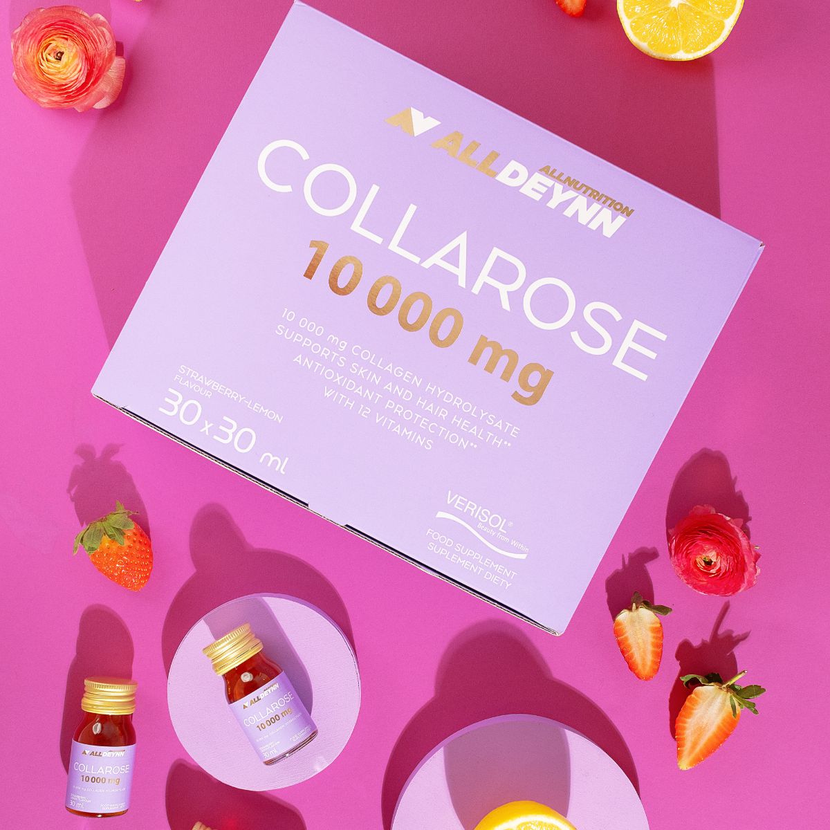 ALLDEYNN COLLAROSE 10 000 MG valódi forradalom a szépségápolásban – egy gondosan kidolgozott folyékony étrend-kiegészítő, amely ötvözi a 10 000 mg hidrolizált kollagén erejét 12 vitamin komplexével! A terméket azok számára fejlesztették ki, akik szeretnék kiegészíteni kiegyensúlyozott étrendjüket, és átfogóan gondoskodni szépségükről, bőrük és hajuk megjelenéséről. A csomag 30 napos teljes használatra elegendő.