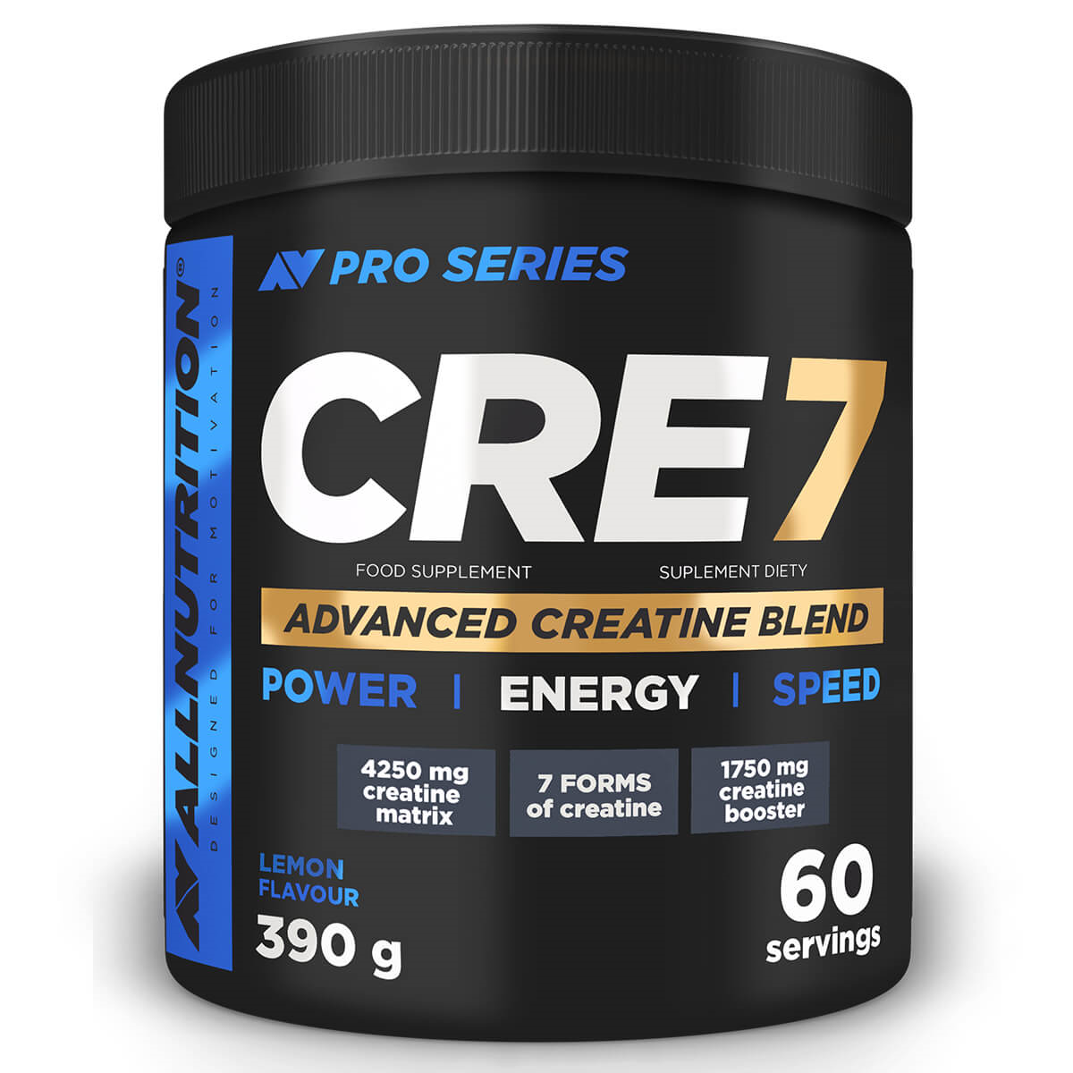CRE7 az úgynevezett kreatin mátrix, amely a kreatin több formájának komplexe. A kreatin növeli a fizikai teljesítményt az egymást követő rövid, nagy intenzitású edzések esetén, és már napi 3 g fogyasztása esetén is kedvező hatás jelentkezik [1].