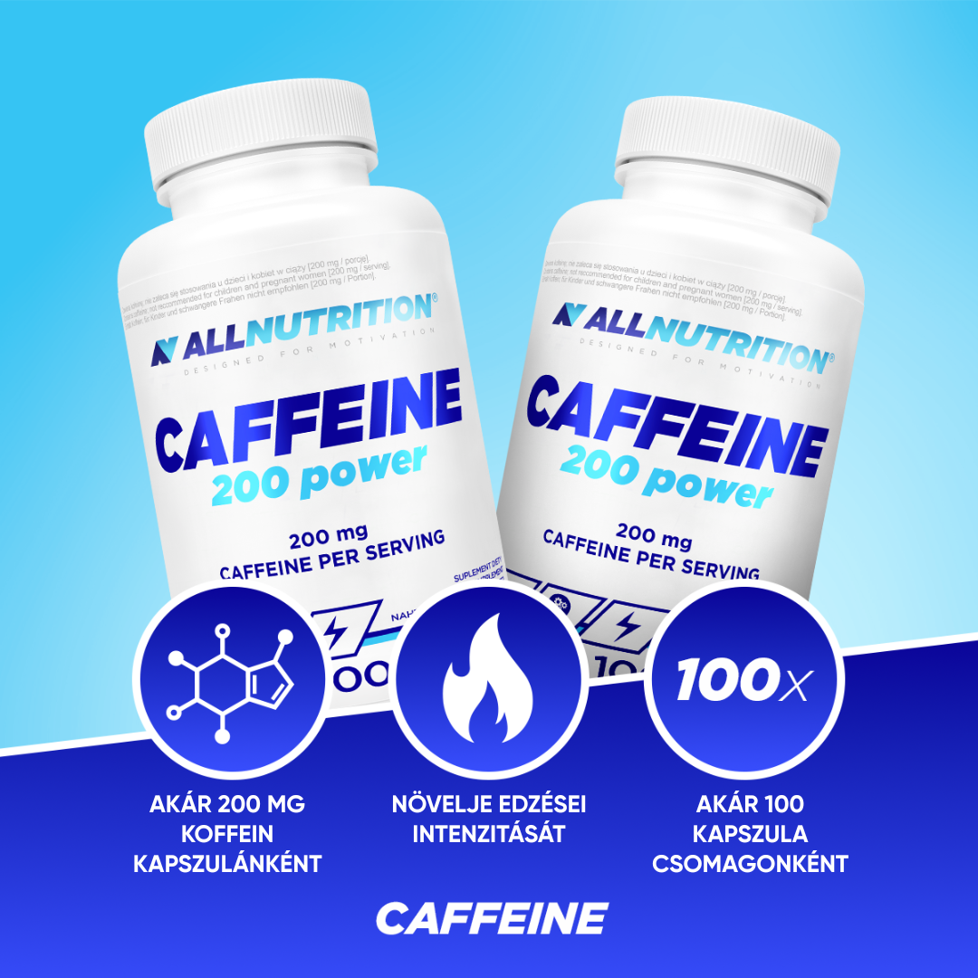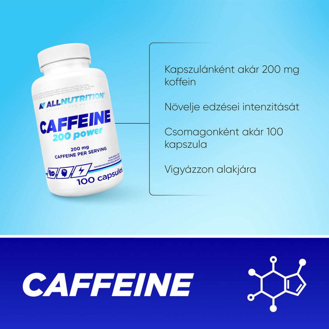 vízmentes koffein, maltodextrin, kapszulahéj (zselatin), csomósodást gátló szerek: kalcium-karbonát, szilícium-dioxid, zsírsavak magnézium sói, glutént tartalmazó gabonaféléket tartalmazhat, szója, tej, tojás és abból készült termékek