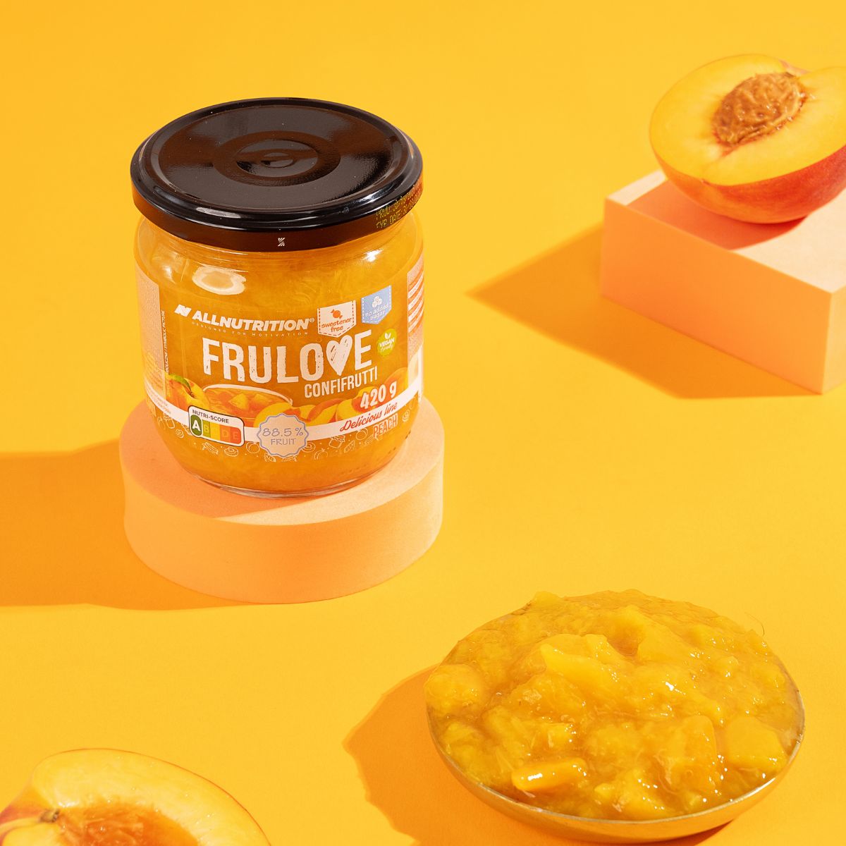 ALLNUTRITION FRULOVE CONFIFRUTTI PEACH a gyümölcsök valódi esszenciája, amelynek édessége kizárólag belőlük származik. Ideális választás azok számára, akik figyelnek az összetevőkre és az ízre! FRULOVE CONFIFRUTTI PEACH finom őszibarackos kiegészítő az ételeidhez.