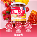 Ezen felül FRULOVE IN JELLY MANGO & STRAWBERRY lényegesen magasabb gyümölcstartalommal rendelkezik – akár 80% az egész csomagban –, és akár ötször kevesebb kalóriát tartalmaz, mint egy hagyományos dzsem.