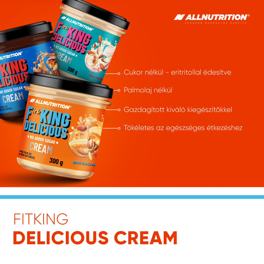 ALLNUTRITION FITKING DELICIOUS CREAM ez egy finom krém cukor és pálmaolaj nélkül - eritritollal édesítve. Biztosan ízleni fog és elmerülhetsz az őrült ízében!