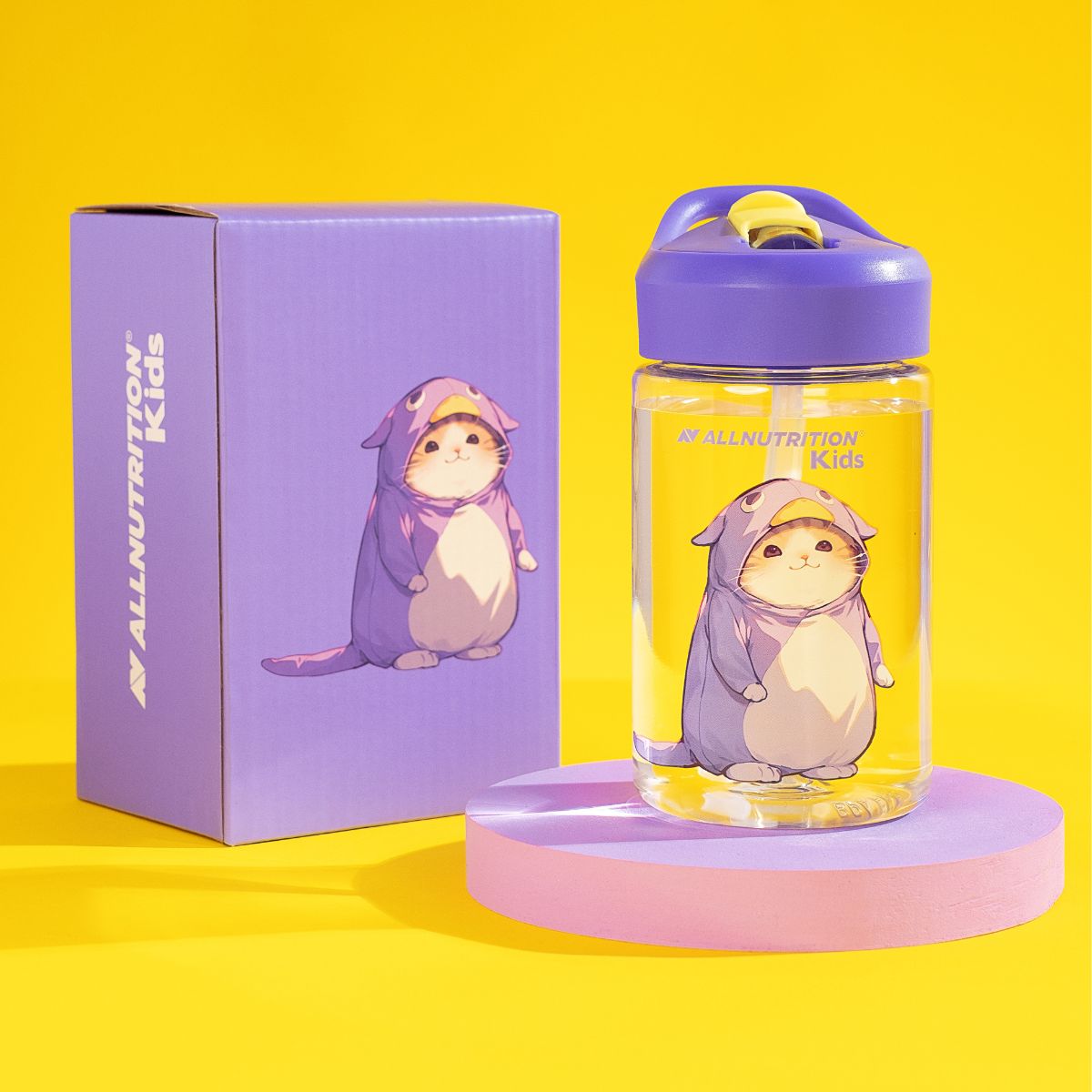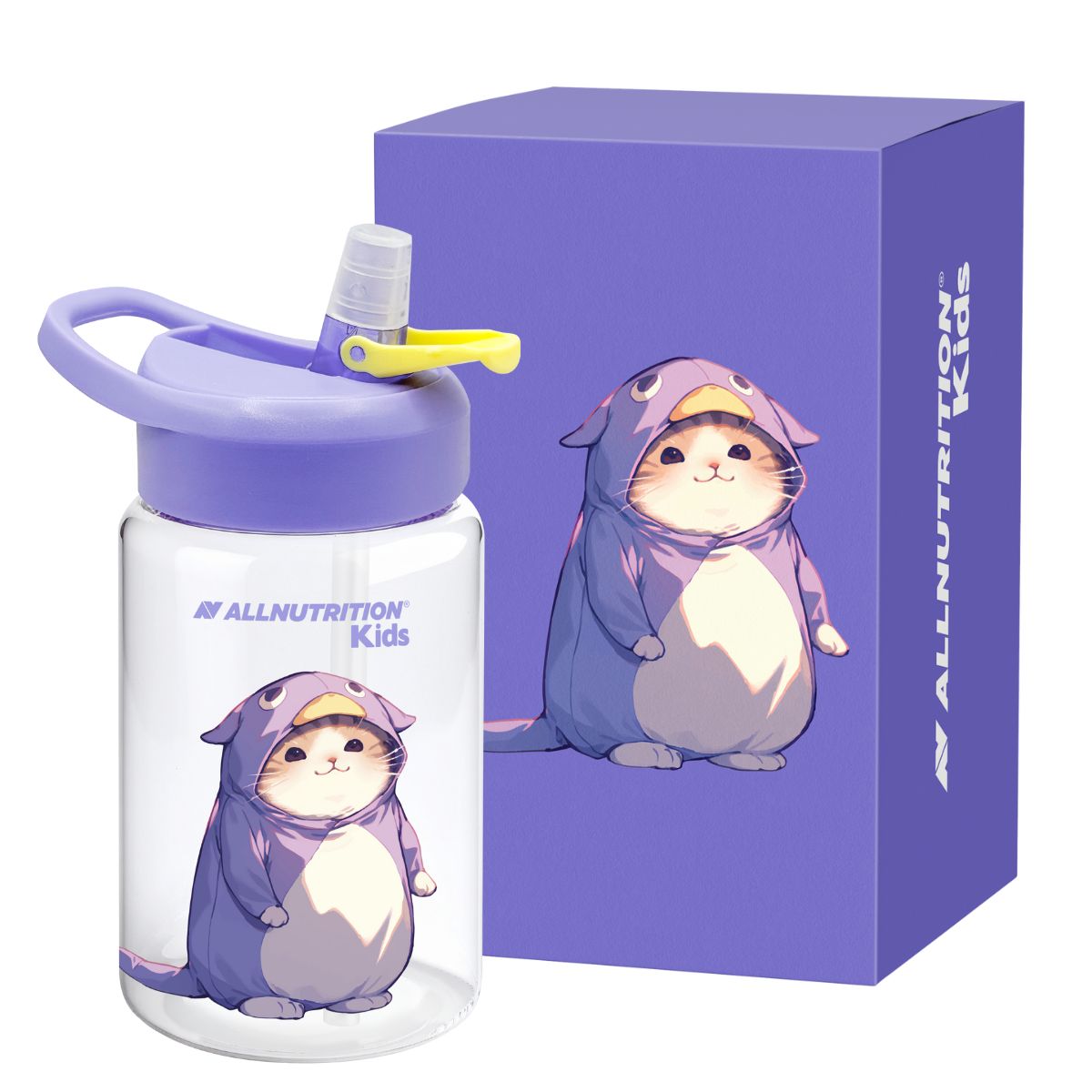ALLNUTRITION GYERMEK KULACS egy praktikus, szívószálas kulacs 350 ml űrtartalommal, amelyet a legkisebb felfedezők számára terveztek. Modern Tritan anyagból készült, könnyű, strapabíró és biztonságos a kis kezek számára. A színes dizájn aranyos, jelmezes cicával gondoskodik róla, hogy az ivás a gyermek kedvenc tevékenységévé váljon.