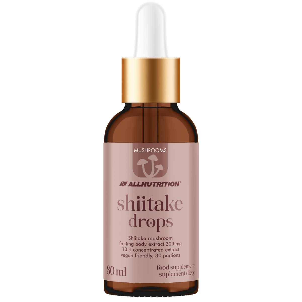 ALLNUTRITION MUSHROOMS SHIITAKE DROPS kiváló minőségű étrend-kiegészítő cseppek formájában, amely shiitake gomba, azaz az ehető tönkösgomba kivonatát tartalmazza. A shiitake a világ egyik legismertebb és legnagyobbra értékelt funkcionális gombája, amelyet évszázadok óta alkalmaznak hagyományos receptúrákban. Ideális választás aktív életmódot folytató személyek számára, akik természetes módon szeretnék növényi eredetű összetevőkkel gazdagítani étrendjüket.