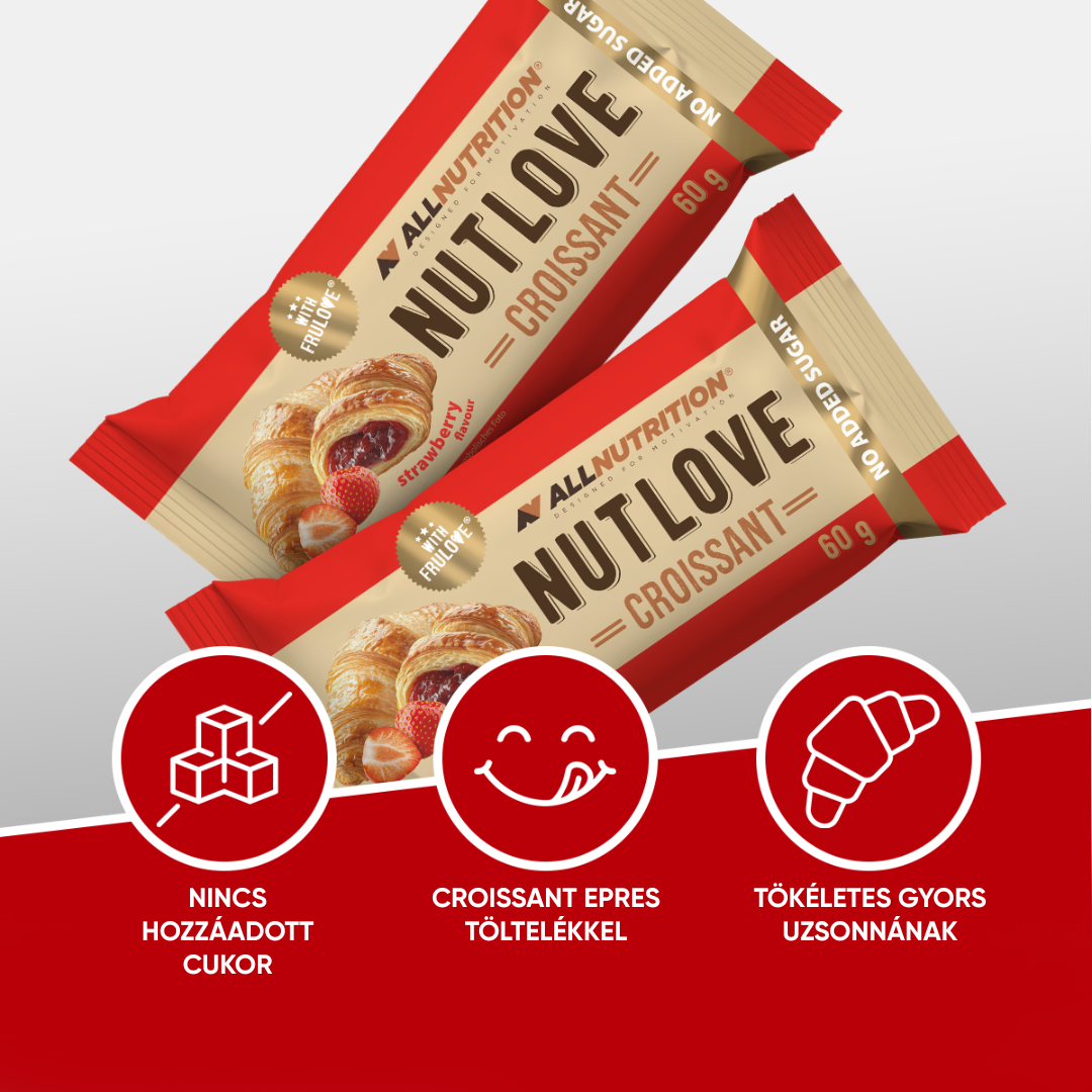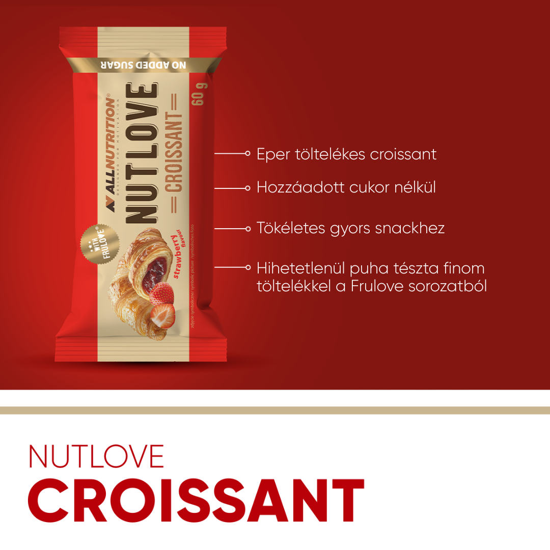 ALLNUTRITION NUTLOVE CROISSANT STRAWBERRY egy fantasztikusan puha croissant mennyeien gyümölcsös töltelékkel! Azoknak készült, akik szeretnék élvezni az édes ízeket anélkül, hogy a túl sok cukor miatt kellene aggódniuk.