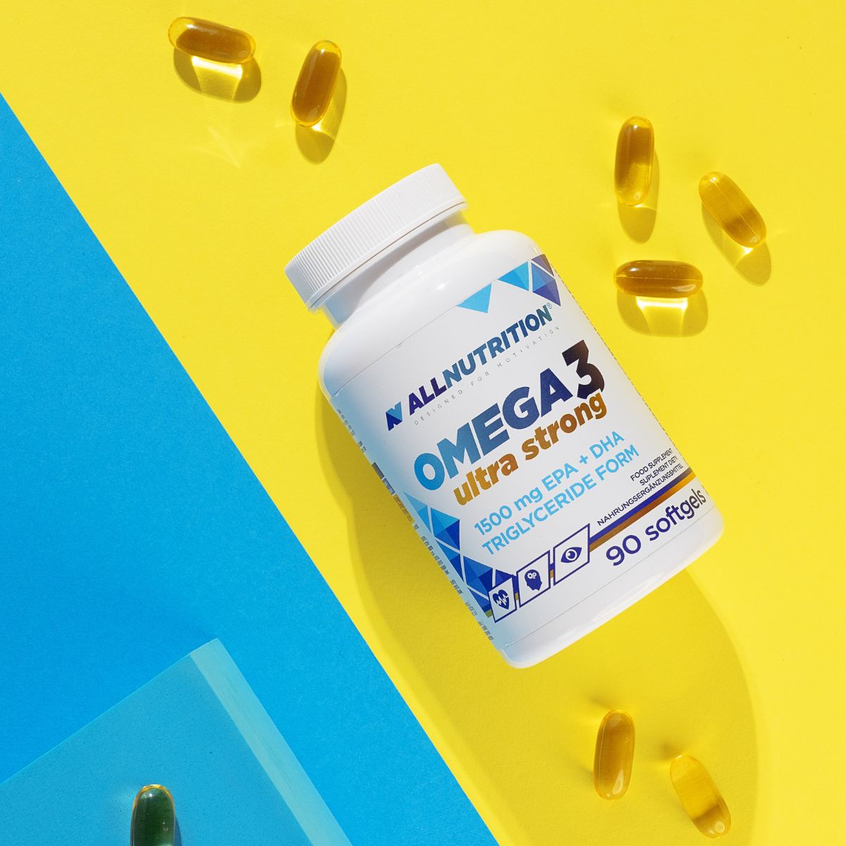 ALLNUTRITION OMEGA 3 ULTRA STRONG étrend-kiegészítő lágyzselatin kapszula formájában, amely koncentrált forrása az omega-3 zsírsavaknak (EPA és DHA), valamint E-vitamint is tartalmaz. Azoknak készült, akik aktív életet élnek és egyszerű módon szeretnék kiegészíteni étrendjüket ezekkel a kulcsfontosságú tápanyagokkal.