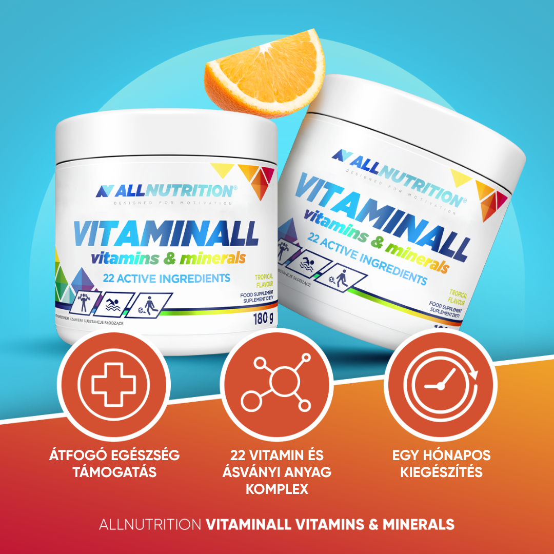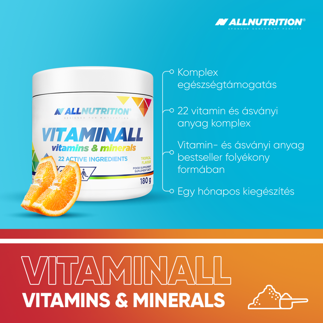 ALLNUTRITION VITAMINALL VITAMINS & MINERALS egy komplex készítmény, amely pótolja az étrendben szükséges vitaminokat és ásványi anyagokat. Most a legkedveltebb vitamin- és ásványianyag-formula új, folyékony változatban!