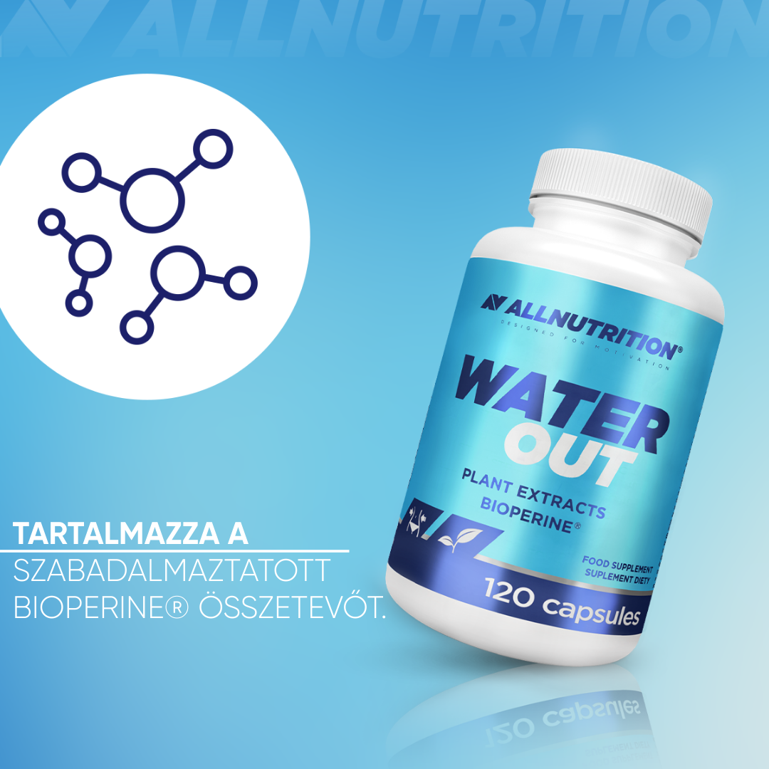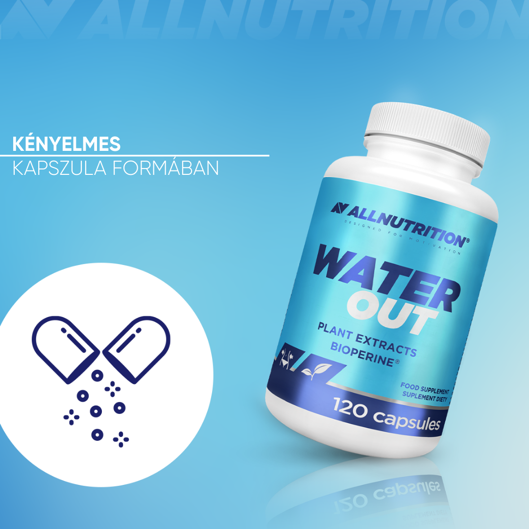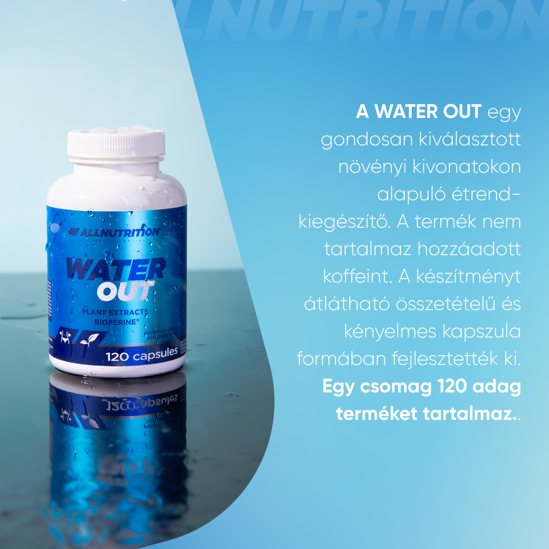 ALLNUTRITION WATER OUT kapszula formájú étrend-kiegészítő, amely növényi kivonatok kombinációját és standardizált fekete bors kivonatot, BioPerine®-t tartalmaz. A formulát olyan személyek számára fejlesztették ki, akik szeretnék mindennapi étrendjüket növényi eredetű összetevőkkel kiegészíteni praktikus kapszula formában.