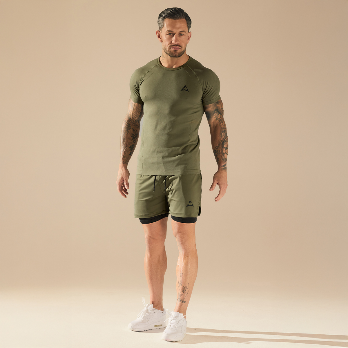 - Két rétegből készült rövidnadrág: egy testhez simuló, amely együtt mozog a testtel, és egy lazább, amely teljes kényelmet biztosít mozgás közben.