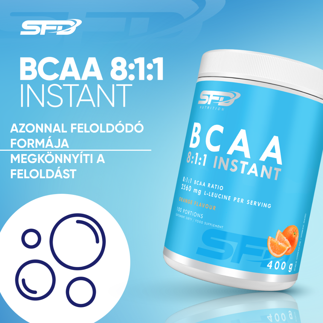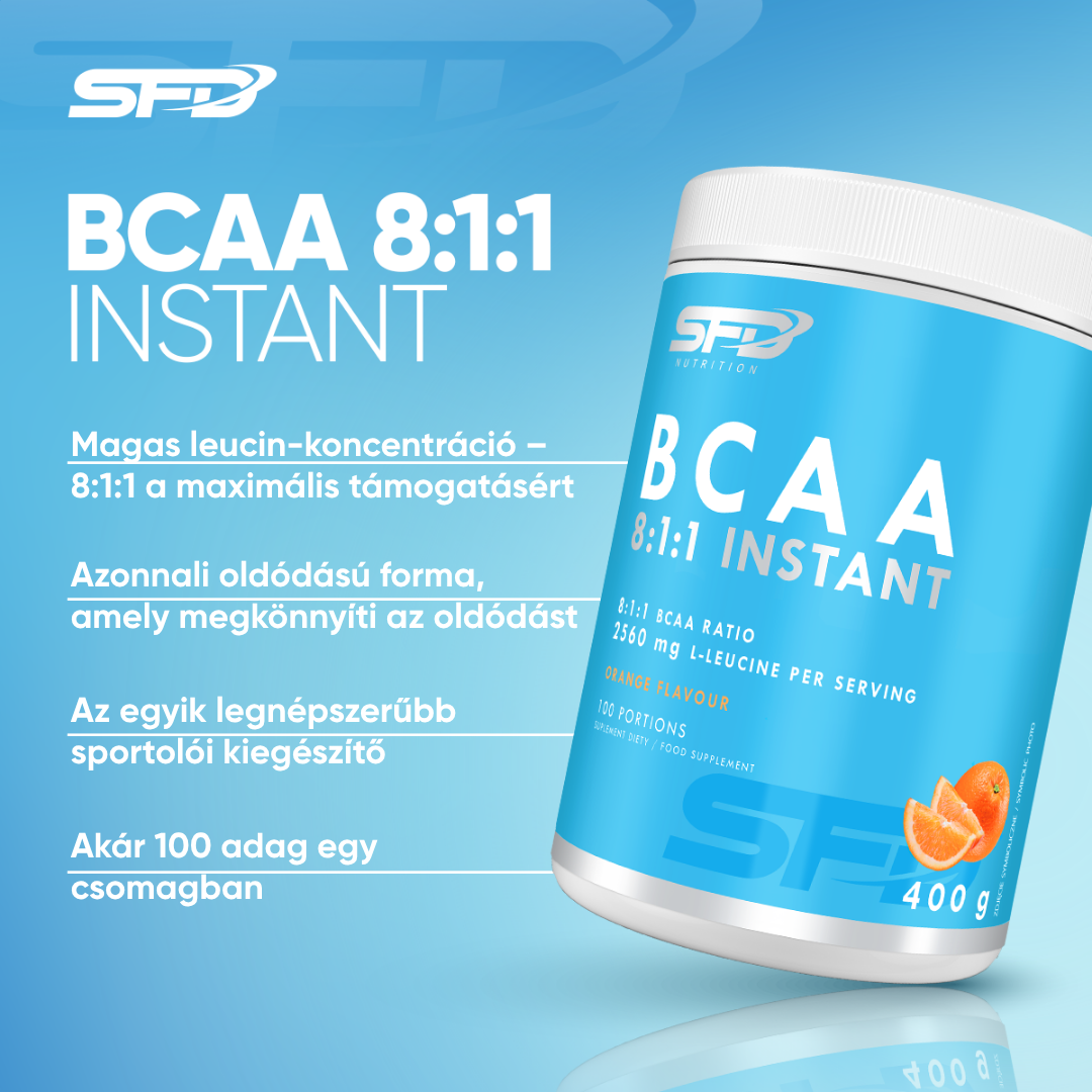 SFD BCAA 8:1:1 je komplex rozvetvených aminokyselín v pomere 8:1:1 (l-leucín : l-valín : l-izoleucín), vytvorený pre intenzívne trénujúcich športovcov a fyzicky aktívnych ľudí. Dominantná dávka leucínu – kľúčovej aminokyseliny zo skupiny BCAA – podporuje organizmus počas tréningu aj vo fáze regenerácie.