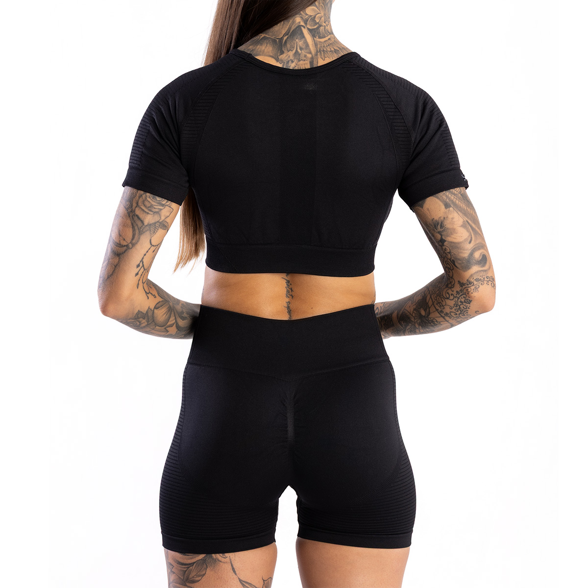 SEAMLESS SHORTS PUSH UP BLACK a részletekre odafigyelve készült, varrás nélküli, alakformáló tulajdonságokkal. Kiemeli minden nő természetes szépségét! A magas derékrész széles gumival formálja a has területét, a push-up hatás és a fenék alatti díszítő textúrák pedig kiemelik annak formáját. A short rugalmas és kellemes tapintású anyagból készült, amely tökéletes illeszkedést és magas viselési komfortot biztosít.